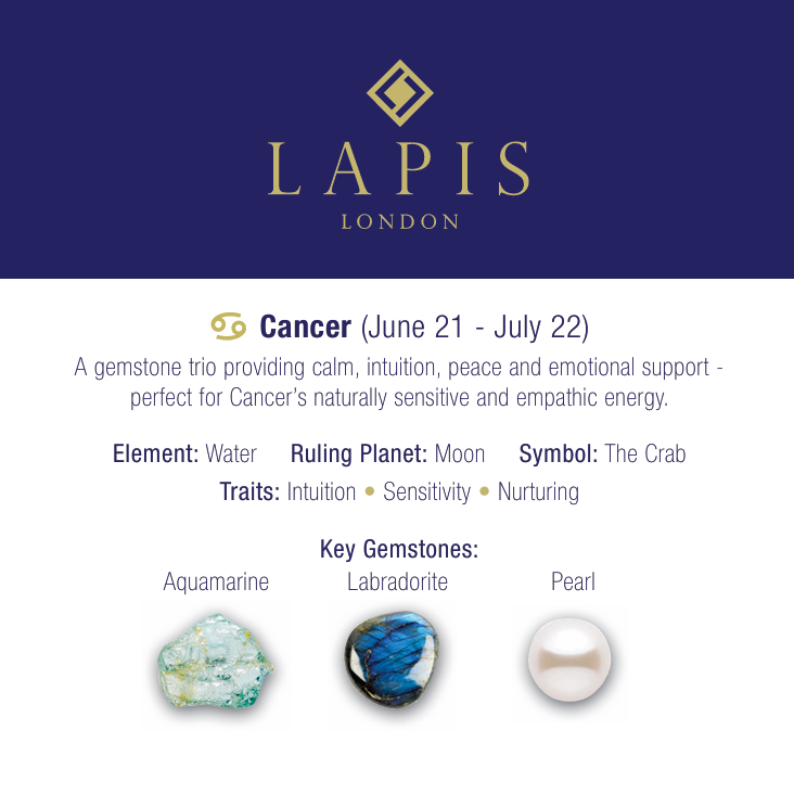 A gemstone trio providing calm, intuition, peace and emotional support -  perfect for Cancer's naturally sensitive and empathic energy.