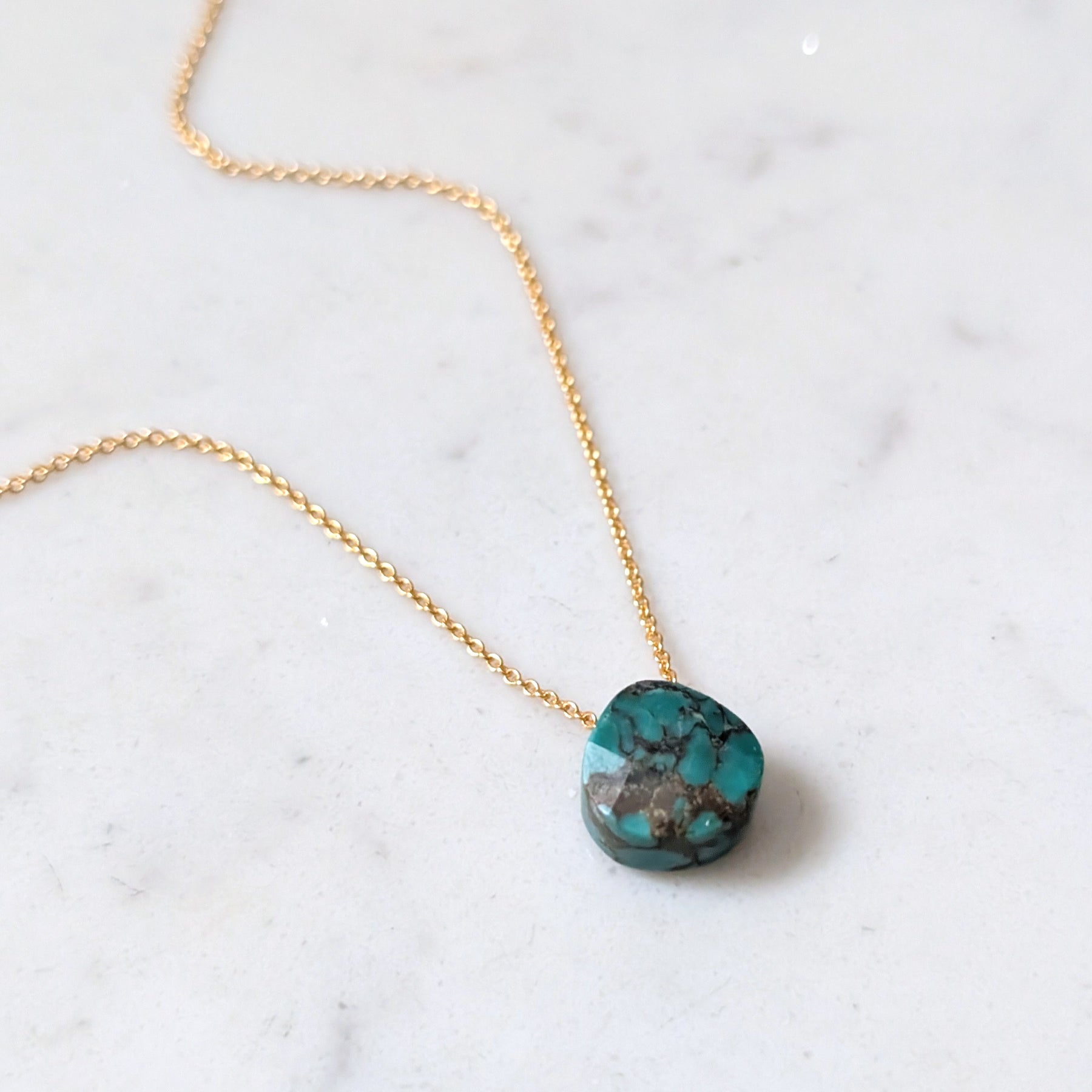 The Teardrop necklace features a faceted briolette cut pendant, expertly handcrafted to display the natural beauty of this gemstone at its finest.