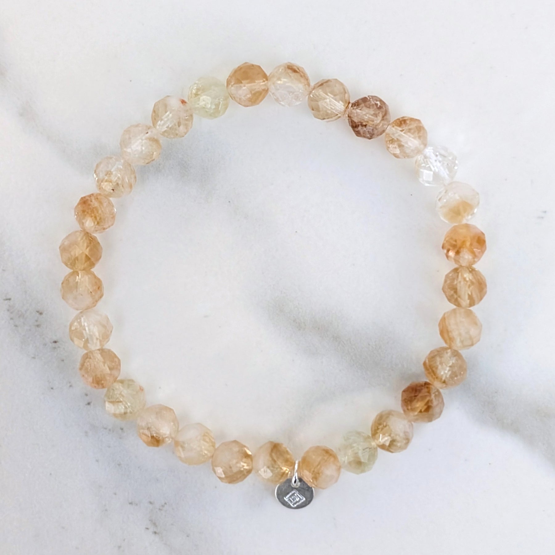 Elevate your style with our beautiful Citrine gemstone beaded bracelet comprising 6mm faceted gemstone beads, each exhibiting the stone’s captivating golden, yellow and amber hues evoking sunlight and warmth.