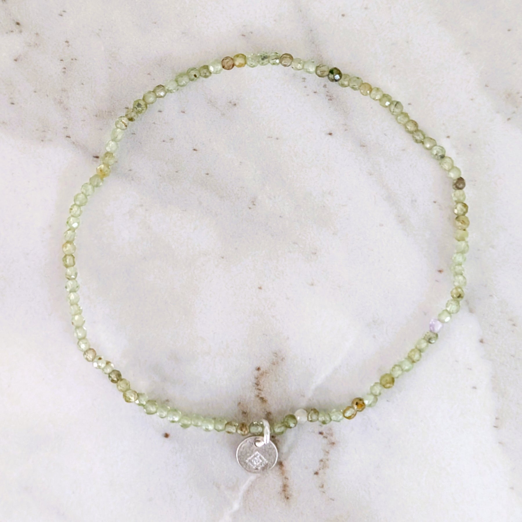 2mm faceted bead green peridot August birthstone gemstone bracelet