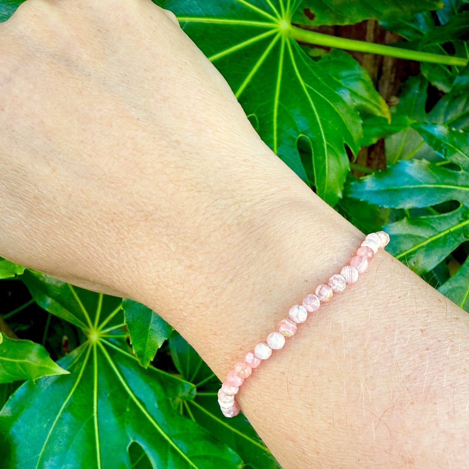 Rhodochrosite Gemstone Bracelet - 4mm Faceted