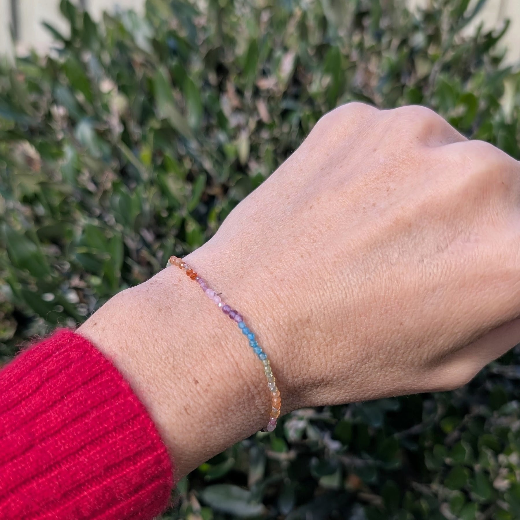 Good Vibes rainbow gemstone bracelet with 2mm faceted beads