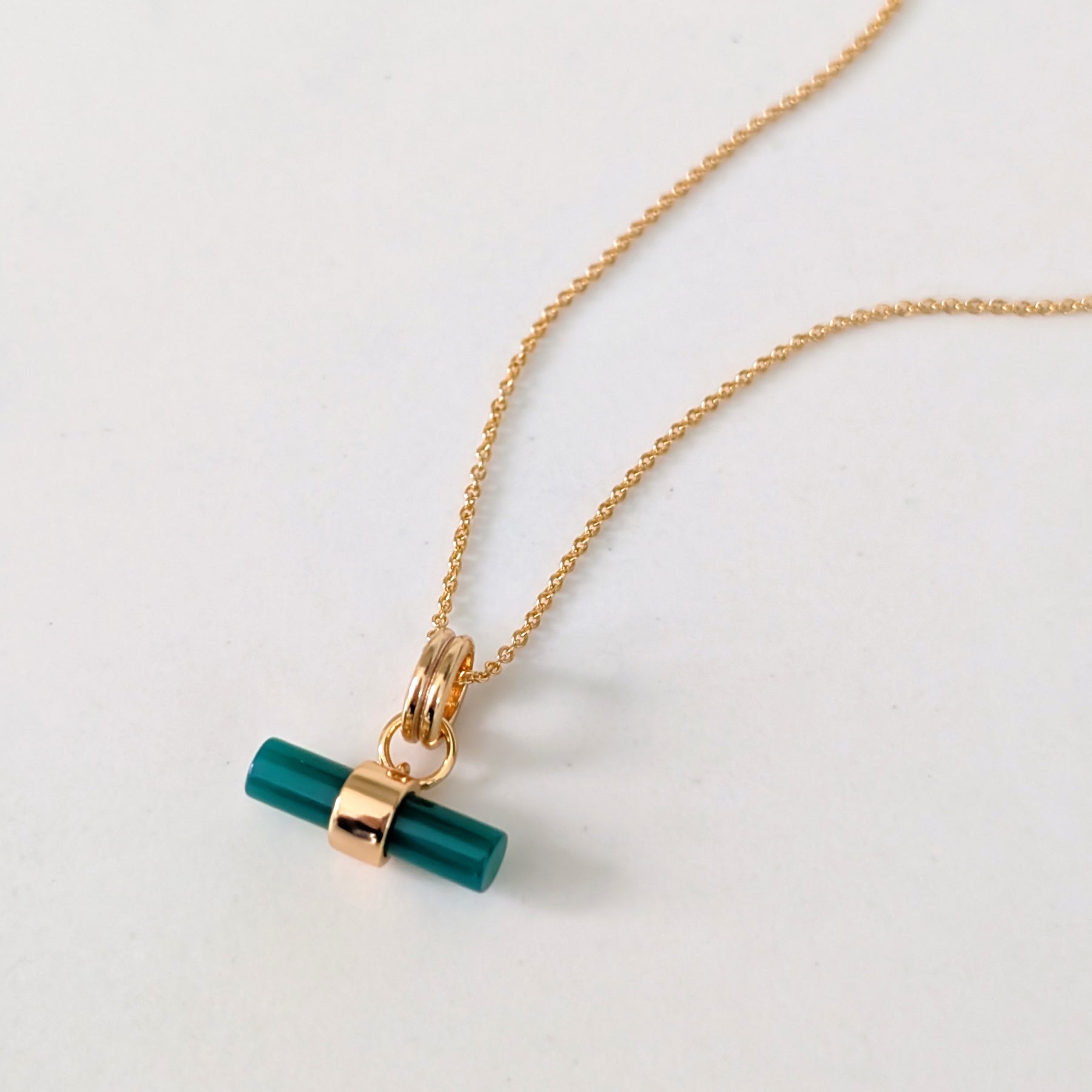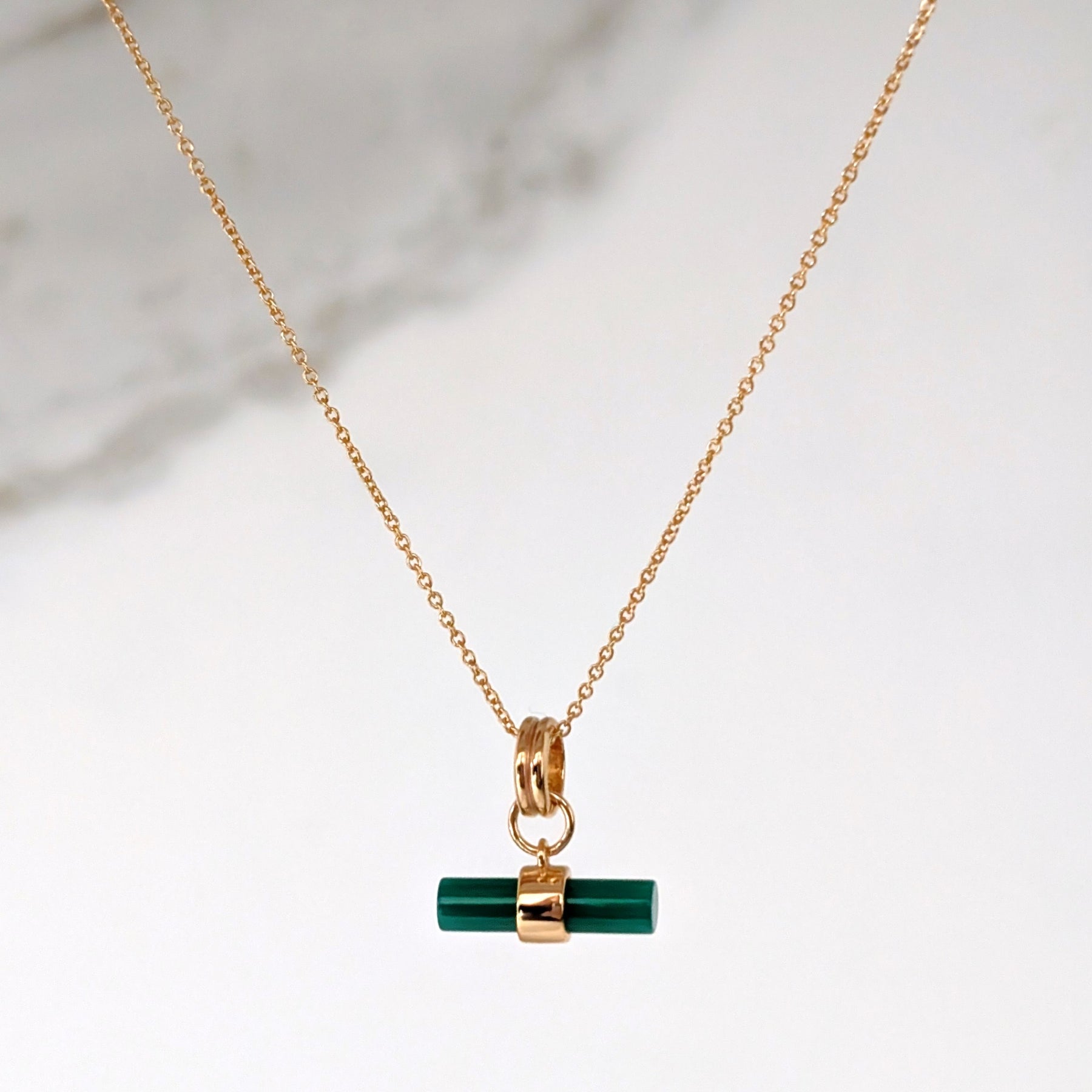 Our stunning Green Onyx T-Bar necklace is the perfect balance of elegance and edge!