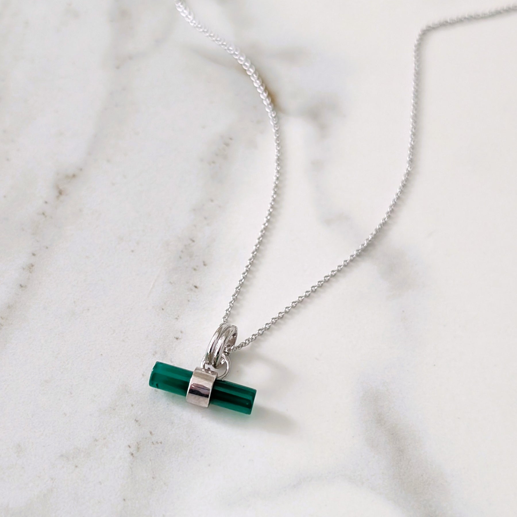 sterling silver green onyx t-bar necklace